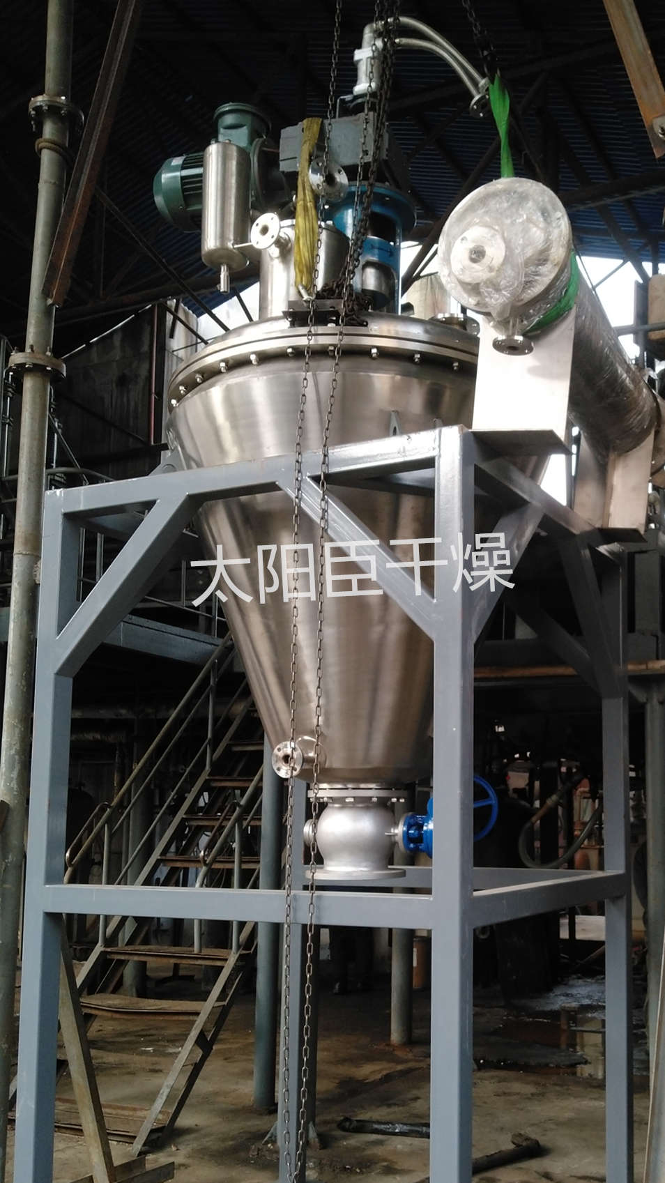 近日,中国兵器工业集团旗下子公司,向江苏太阳臣订购的内加热锥形螺带真空干燥机,已经交付客户现场,准备安装调试。